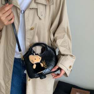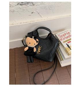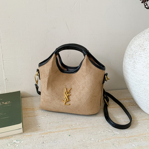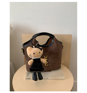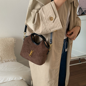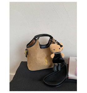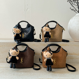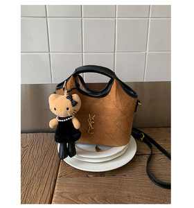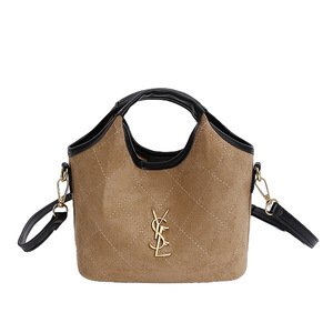 质感纯色手提包菱格绣线大容量菜篮子包2025鹿皮绒字母单肩斜挎包