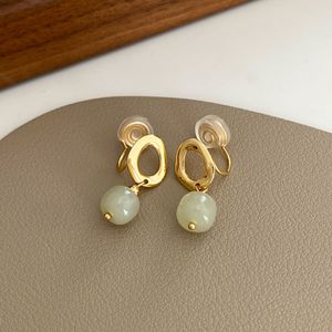 小众设计高级感不规则几何椭圆绿玉吊坠无耳洞耳夹轻奢时尚耳钉