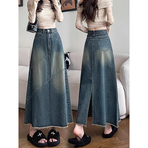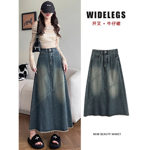 美式开叉牛仔半身裙女秋季2025年新款高腰显瘦梨型包臀遮胯a字裙