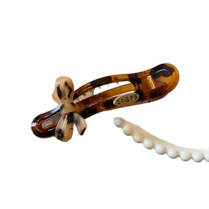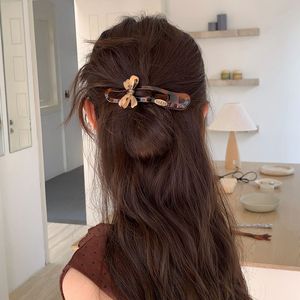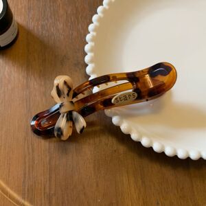 新款法式复古豹纹蝴蝶结懒人夹高级百搭后脑勺盘发夹女鸭嘴夹头饰