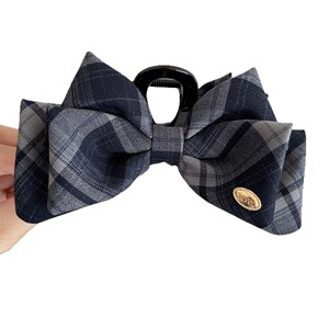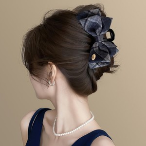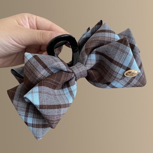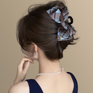 蓝莓夹心!韩系格纹蝴蝶结抓夹女新款扎发鲨鱼夹百搭盘发头巾遮耳