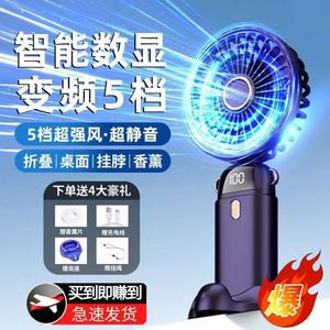 手持小风扇强力便携式五档迷你大风力数显桌面小风炮持久续航