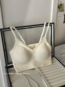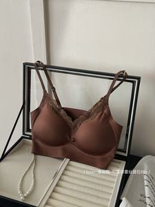 J2211#漫画胸-可露丽蕾丝提拉Bra加厚馒头杯深V蕾丝花边聚拢内衣