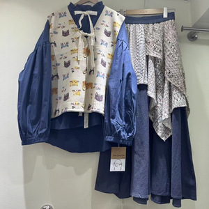 日系甜美小清新V领针织宽松背心马甲秋季坎肩减龄小猫印花毛衣女