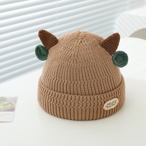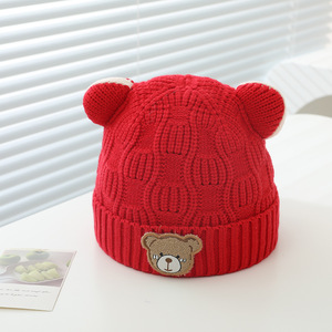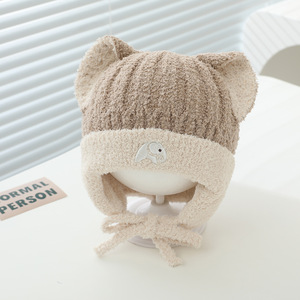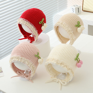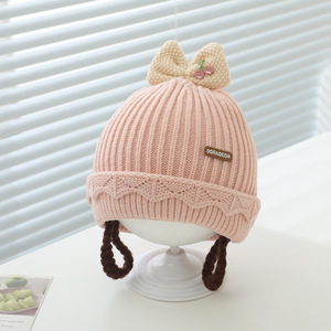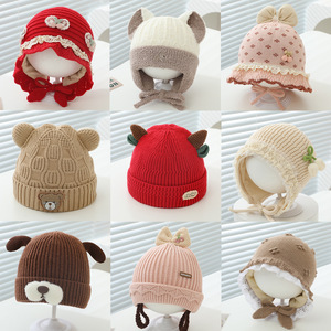 宝宝帽子冬季可爱小月龄男女孩针织帽儿童加厚保暖防寒护耳毛线帽