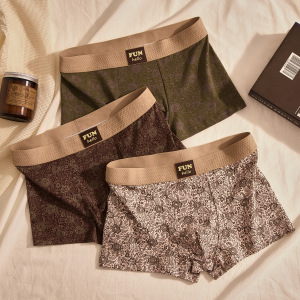 10A抗菌男士内裤复古玫瑰印花潮流男士内裤纯棉男士内裤一件代发