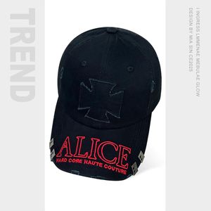 美式高街布贴十字架潮牌棒球帽男女街头嘻哈磨破弯檐大头围鸭舌帽