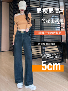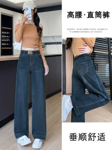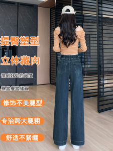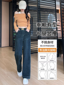 松紧腰窄版阔腿牛仔裤女秋季2025新款高腰宽松大码胖mm休闲直筒裤
