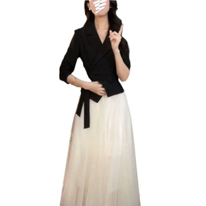 2025新款气质春秋西装高级感上衣超仙的半身网纱裙两件套套装女