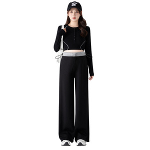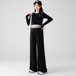孕妇裤春秋无托腹直筒阔腿裤2025新款外穿宽松垂感撞色孕妇休闲裤