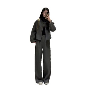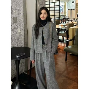 穿搭一整套高级感时尚套装女秋冬小香风毛呢外套休闲阔腿裤两件套