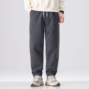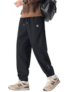 尚谷男装|2025秋季新学生裤子男潮流百搭仿牛格子刺绣束脚休闲裤