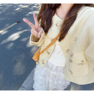 2025秋季新款法式小香风蝴蝶结粗花呢外套+网纱长裙套装女2127