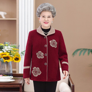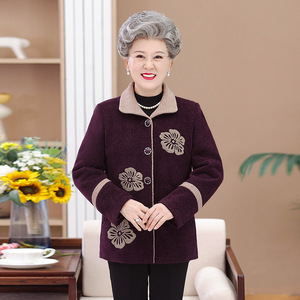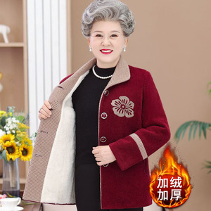 妈妈水貂绒大衣奶奶秋冬外套新款大码老年人冬装加绒加厚保暖衣服