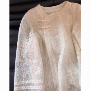 新中式国风圆领提花蕾丝衬衫女春秋2025温柔气质改良盘扣内搭上衣
