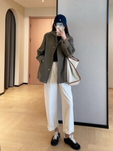 朵妮DN 高品质天丝棉廓形显瘦小个子短款连帽风衣夹克外套2025秋
