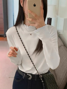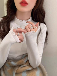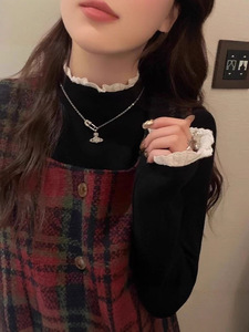 美式蕾丝立领花边简约德绒打底衫女秋冬内搭上衣新款设计感长袖