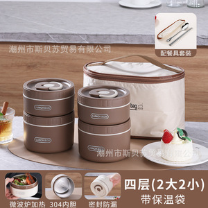 四层(咖啡色)带保温袋配餐具