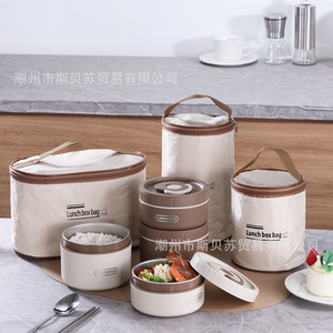 三层(米白色)带保温袋配餐具
