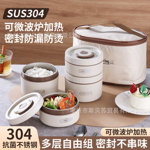 保温饭盒304不锈钢上班族可微波炉加热便当盒学生防漏便密封罐