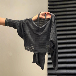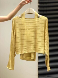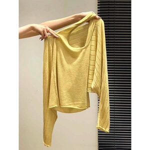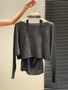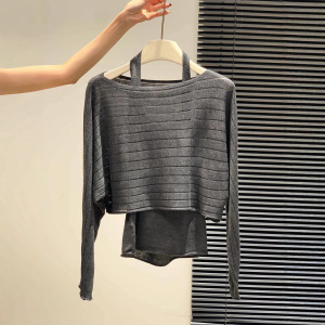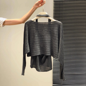 广州十三行高货爆款~气质长袖针织衫女罩衫+露背针织背心两件套女