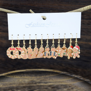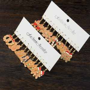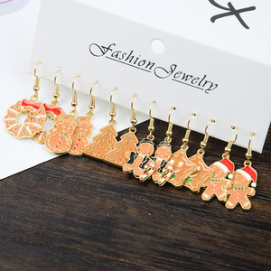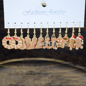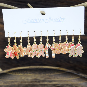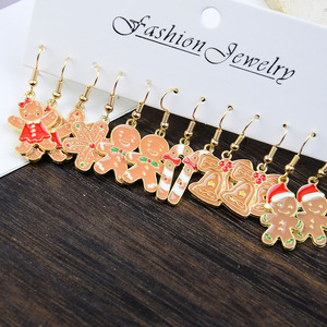 跨境新款圣诞姜饼人锌合金耳环 圣诞树铃铛雪人雪花卡通配件耳饰