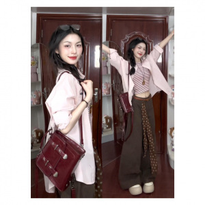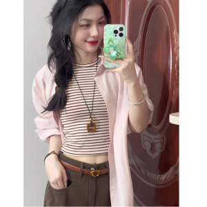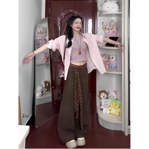 满江月粉色气质韩系宽松长袖衬衫女秋季设计感休闲慵懒风开衫外套