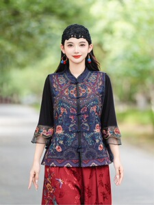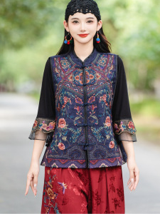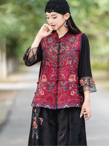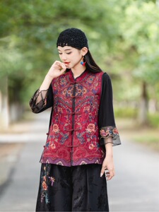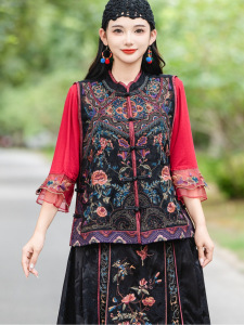 2025秋季上新民族风重工刺绣小立领坎肩缎面女式里布马甲