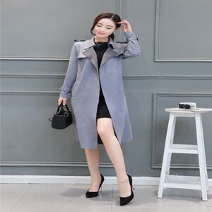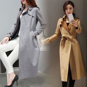 年春秋修身外套女学生韩版宽松百搭风衣鹿皮绒中长款过膝大衣