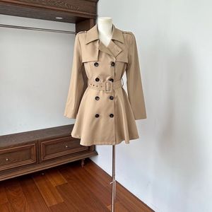 秋叶落畔 卡其连衣裙外套+腰带风衣气质小众设计感收腰显瘦大衣女