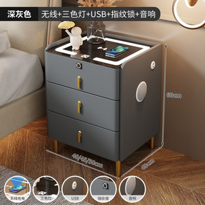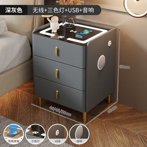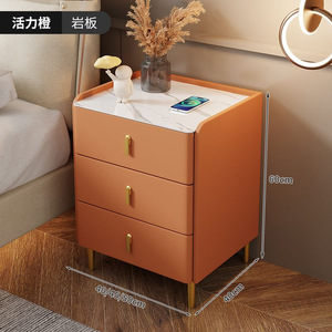 智能床头柜岩板床头桌三抽多功能无线充电现代简约卧室家用床边柜
