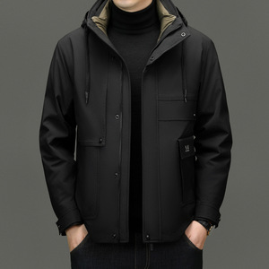 一衣三穿连帽秋冬新款中长羽绒服男士脱卸羽绒内胆防寒休闲羽绒服