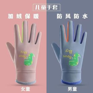 冬季中小儿童保暖手套防风防泼水男女童滑雪玩雪加绒骑行户外手套