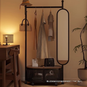 可移动挂衣架带镜子卧室落地式全身镜一体衣帽架试衣镜子置物架子