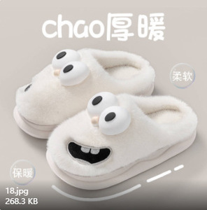 卡通大眼狗棉拖鞋女秋冬季保暖室内家居可爱情侣毛毛拖鞋男士冬天