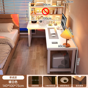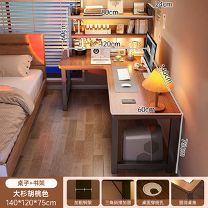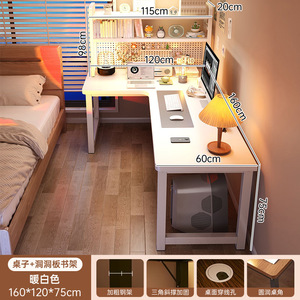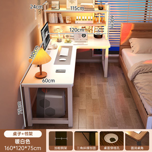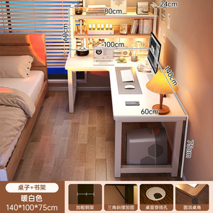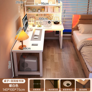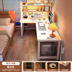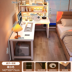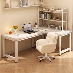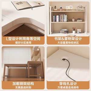 转角书桌家用学习桌现代奶油风电脑桌置物架拐角办公桌书架一体桌