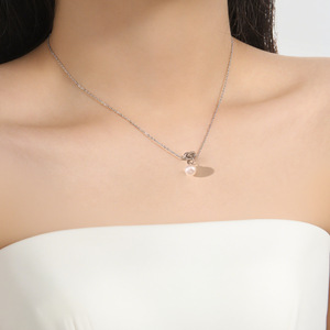 【XKN6208】链条珍珠 项链 钢色