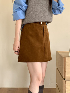 复古灯芯绒a字短裙子薇颂女装2025秋季新款高腰遮胯显瘦半身裙