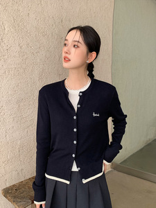 衣尔衫 韩系学院 羊毛字母刺绣针织开衫女新款百搭显瘦上衣0535