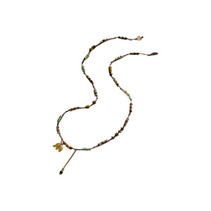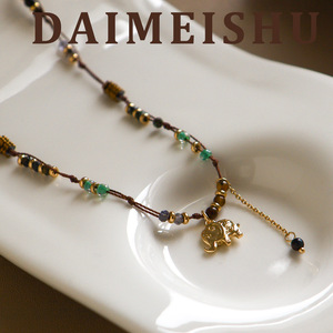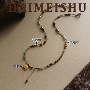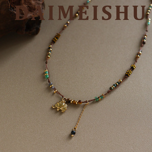 新款复古流苏虎眼石小象项链配饰女轻奢小众高级感编织串珠锁骨链