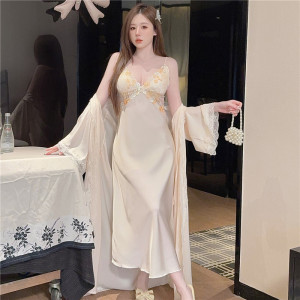 带胸垫长款睡裙冰丝睡衣两件套高级感优雅长裙睡袍冰雪丝家居服女