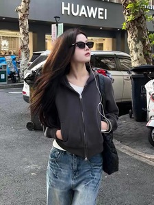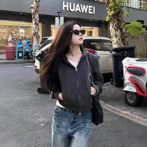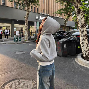 重磅400G美式街头短款开衫连帽卫衣女ins潮流挺括帽衫