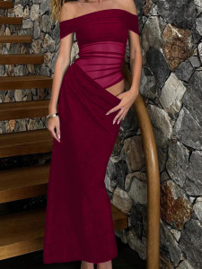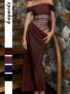 迪芸欧美优雅晚礼服抹胸纯色包臀长裙子连衣裙女装2025秋冬亚马逊