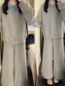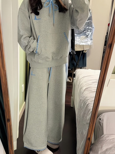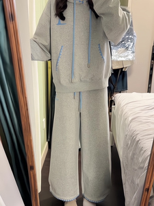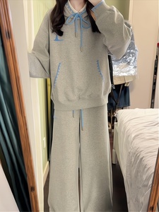 网红OOTD运动服套装女秋冬季慵懒风宽松连帽卫衣休闲阔腿裤两件套