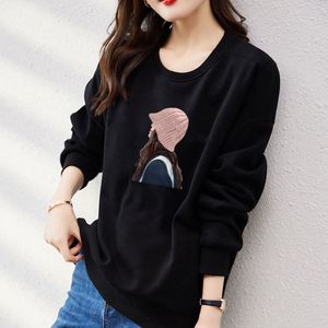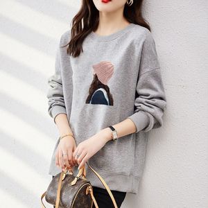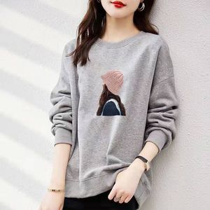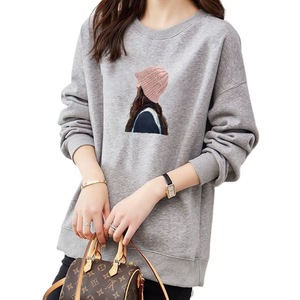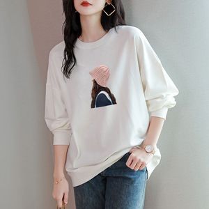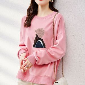 无帽圆领卫衣女装春秋季薄款大码宽松慵懒风休闲百搭印花长袖上衣
