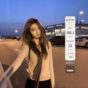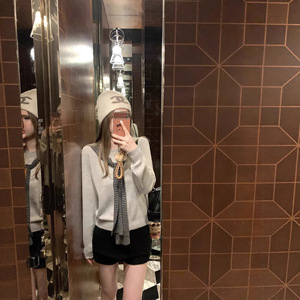 盘盘秀场乖乖牌固定帽子! 羊毛假两件披肩系带针织衫