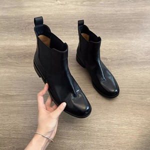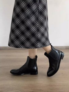牛皮版~英伦风切尔西靴子女秋冬新款简约百搭粗跟马丁靴通勤短靴