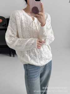 琪镌绘制女装镂空罩衫2025秋季新款系带宽松叠穿长袖针织毛衫6533