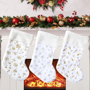 跨境新款圣诞袜烫金雪花白色兔毛绒圣诞袜子礼物袋圣诞节装饰挂件