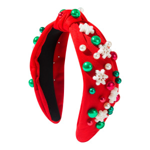 时尚个性合金镶钻珍珠雪花配件打结宽边圣诞节发箍女节日派对发饰